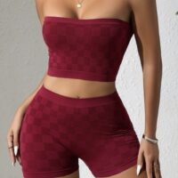 ست لباس زیر زنانه دو تکه با طرح چهارخانه