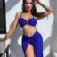ست بیکینی سهتکه تابستانی از برند Swim SXY با طراحی پیچخورده و سیم دار، پارچه کشسان، پد قابل جداسازی و دامن پوششی – مناسب برای شنا و ساحل.